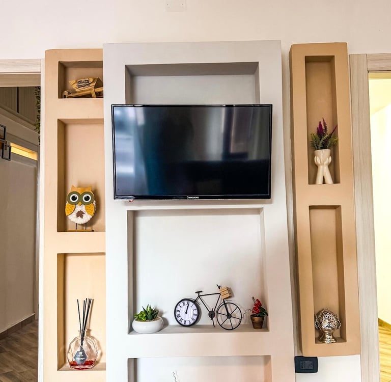 L’appartamento può ospitare fino a otto persone, disponendo di quattro comode e spaziose camere da letto, arredate con gusto. All’ingresso troviamo un’accogliente sala TV con divano angolare, un ampio open space con cucina (dotata di tutti i suppellettili necessari) e vetrata su ampio giardino, dove trascorrere piacevoli serate indimenticabili aperitivi in compagnia.